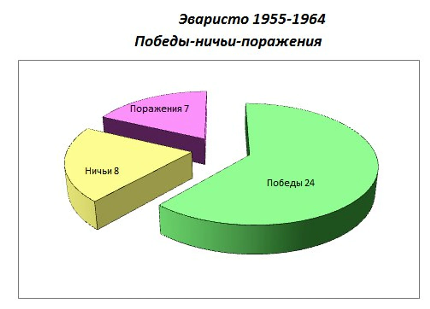 С Эваристов составе его клубы побеждали в 24-х матчах из 39 (61,5%), в восьми матчах победитель не был выявлен(20,5% матчей), ещё в семи победа сопутствовала сопернику(около 18%).