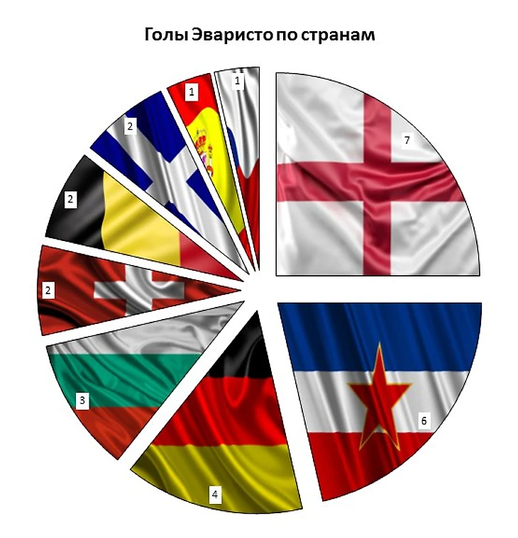 Семь раз он поражал ворота английских клубов, на один гол меньше забил югославам, ещё четыре гола он провёл в ворота клубов ФРГ. Три раза после ударов Эваристо капитулировали болгары, на один гол меньше он забил в ворота швейцарцев, шотландцев и бельгийцев, а чехословакам и своим соотечественникам забил по одному голу. Интересно, что свой «испанский» гол Эваристо забил именно в ворота мадридского «Реала», в составе которого он выступал позже…