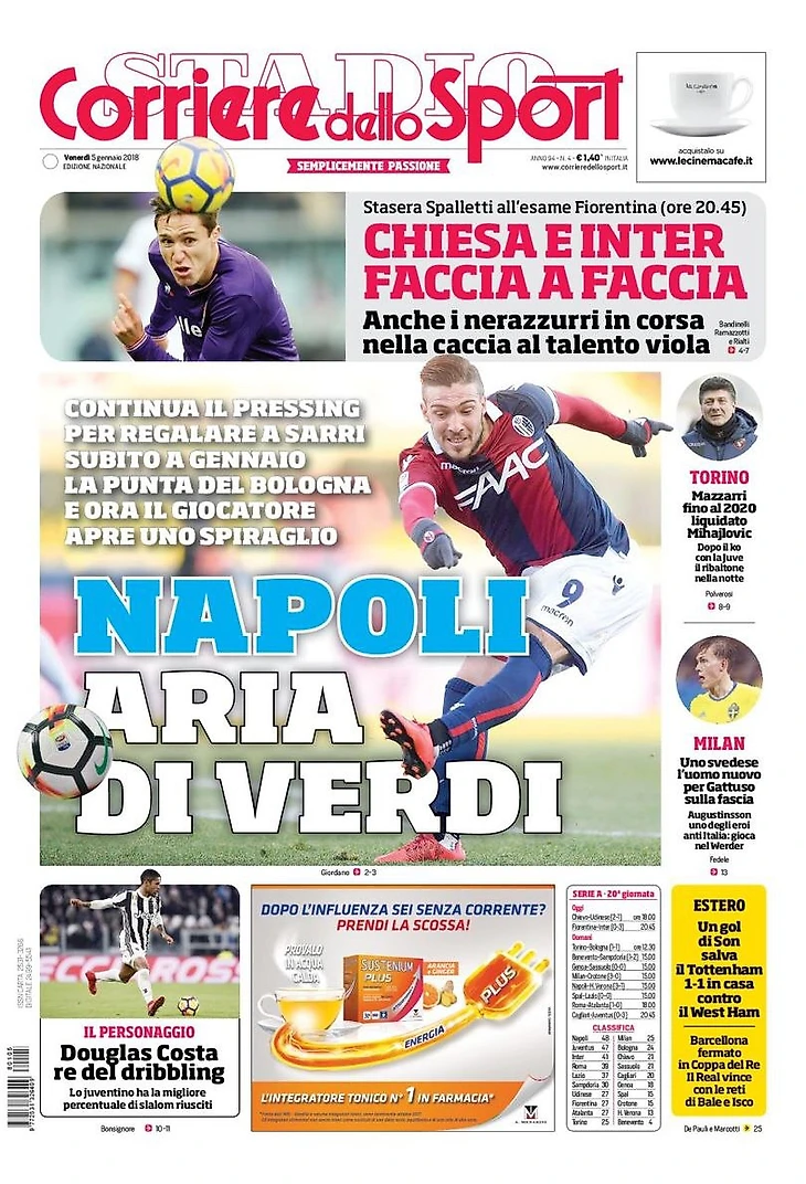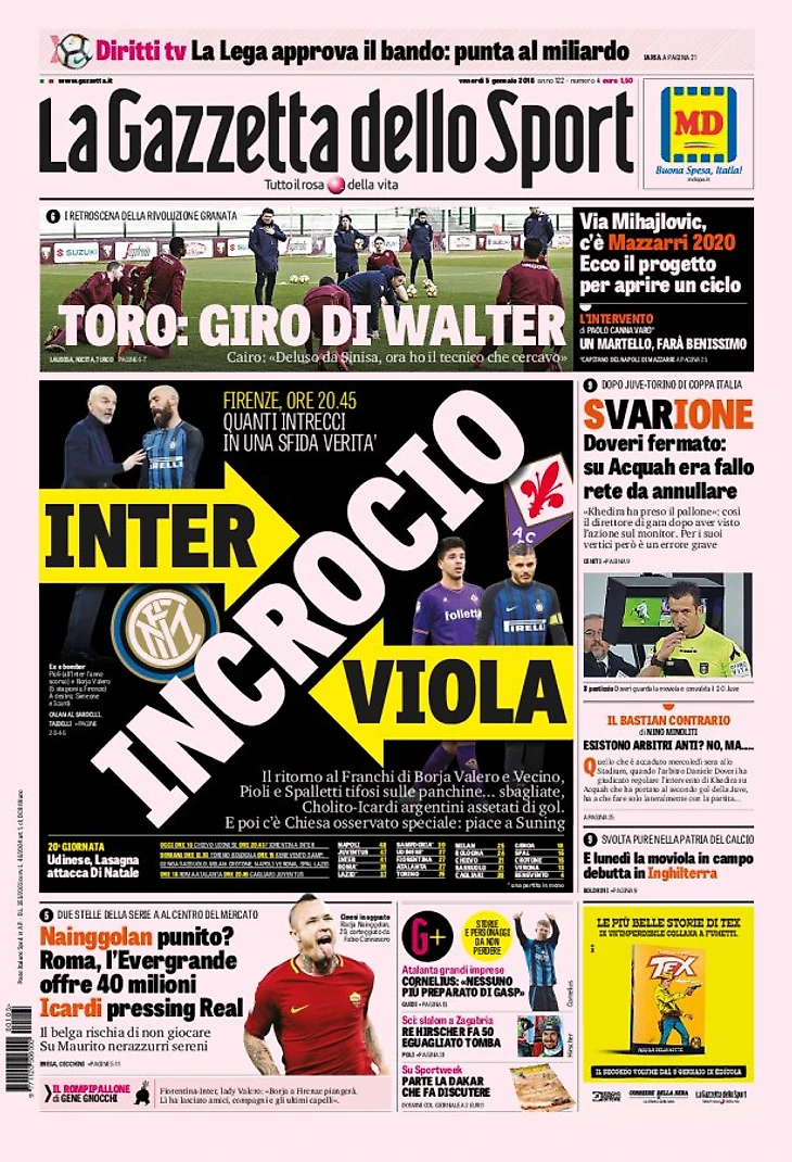 «Интер» и «фиалки», пересечение. Заголовки Gazzetta, TuttoSport и Corriere за 5 января