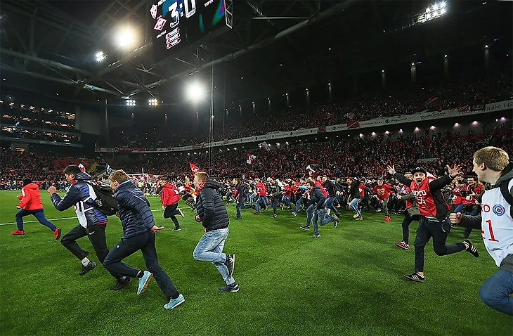 На «Спартак» в сезоне 2017/18 ходит в среднем чуть больше 30 тысяч зрителей. Для нашего чемпионата показатель фантастический. Это ниже уровня предыдущего сезона, но не забывайте, что он был чемпионским, а в нынешнем – все еще впереди. Заполняемость арены, то есть, процент по отношению к общей вместимости – около 66%. Но и без постоянных аншлагов болельщики «Спартака» – реальная сила. Добавляющая команде энергии громогласной, слаженной поддержкой, и креативными баннерами, которые давно можно считать отдельным видом искусства. Солидная явка и на выездных матчах, где «Спартак» подчас чувствует себя, без преувеличения, как дома. Например, в матче с «Тосно» красно-белых было больше, чем поклонников хозяев. В плане посещаемости есть, куда расти. Но болельщики сами собой не придут, даже если постоянно побеждать. Их надо влюбить не только в клуб, но и в стадион. А пространство вокруг арены пока выглядит пустым и безжизненным. Все эмоции – только внутри стадиона.