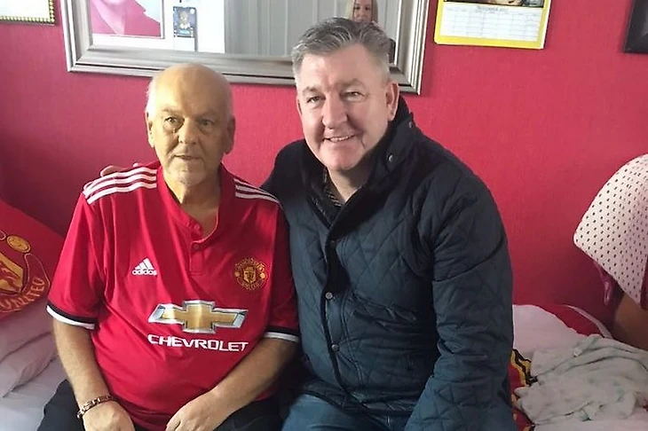 Райан Гиггз и Норман Уайтсайд осуществили мечту умирающего болельщика «Манчестер Юнайтед», навестив его за несколько недель до смерти в канун Рождества. На фото Роберт Клэйтон и Норман Уайтсайд (отыграл за «Юнайтед» 8 сезонов в с 82 по 89 год, выиграв два кубка Англии).