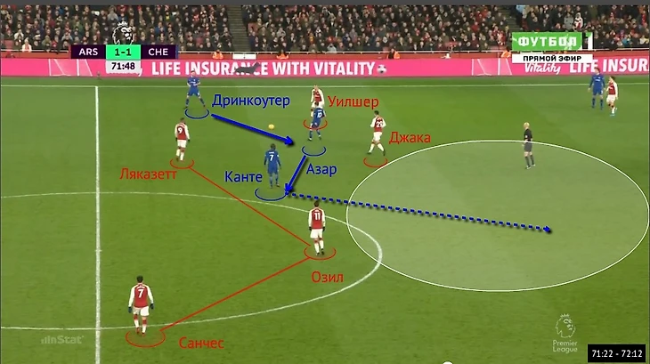 Вкупе с пассивностью Канте, который был слишком «нежен» с оппонентами в этой встрече (всего 2 непосредственных единоборства против Озила и 1 удачное), это определило тактическое преимущество «Арсенала» до перерыва (хотя по созданным голевым моментам наблюдался паритет).