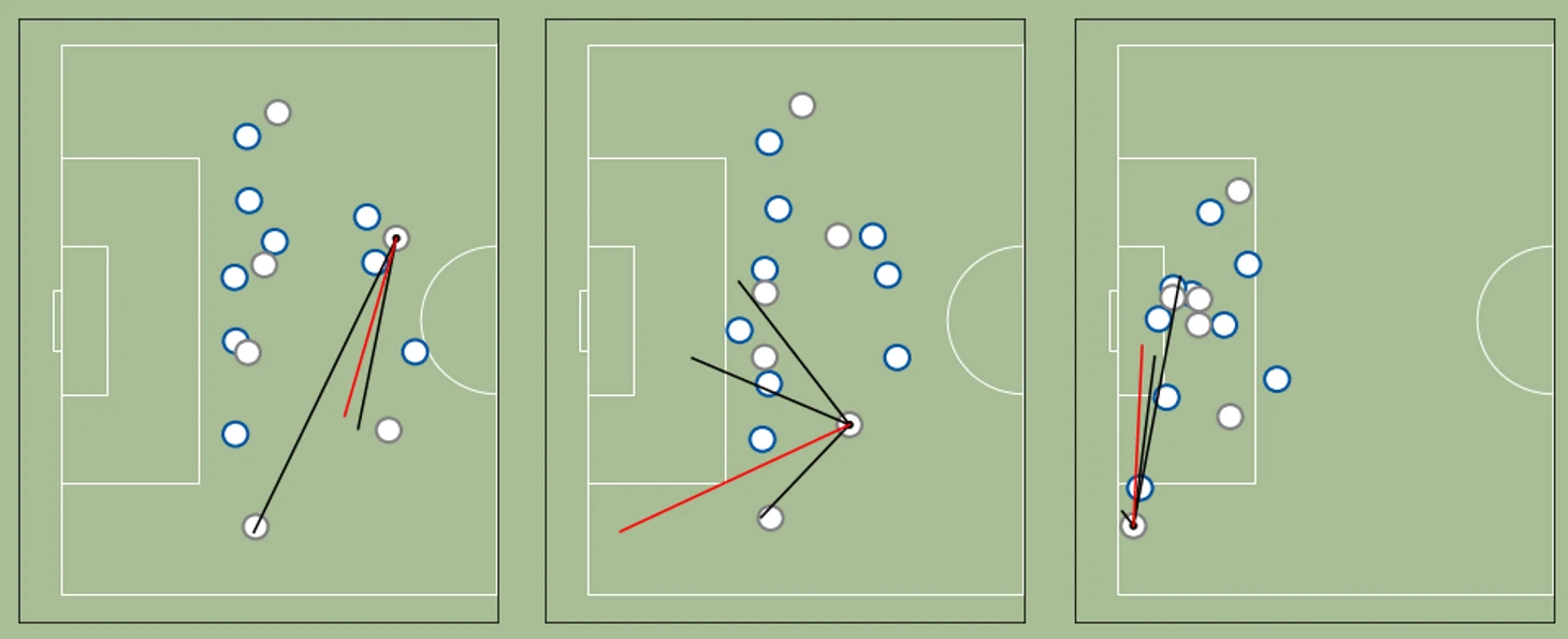 Кроме того, особенность высоко прессингующих команд заключается в том, что они стараются закрывать линии передач, совершить отбор или перехват на чужой половине поля или заставить соперника ошибиться в передаче. Метрика поможет оценить эффективность такой тактики в целом и в частности.