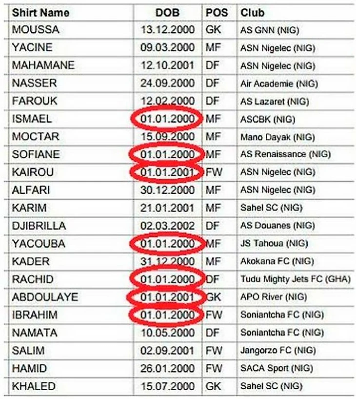 Здесь случаются удивительные совпадения. Заявка сборной Нигера на чемпионат мира U17.