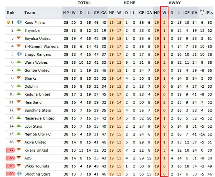 Статистика гостевых матчей чемпионата Нигерии тоже восхищает.