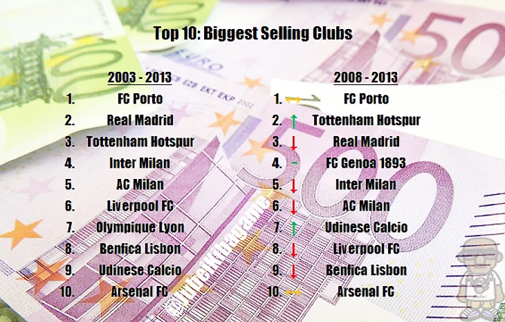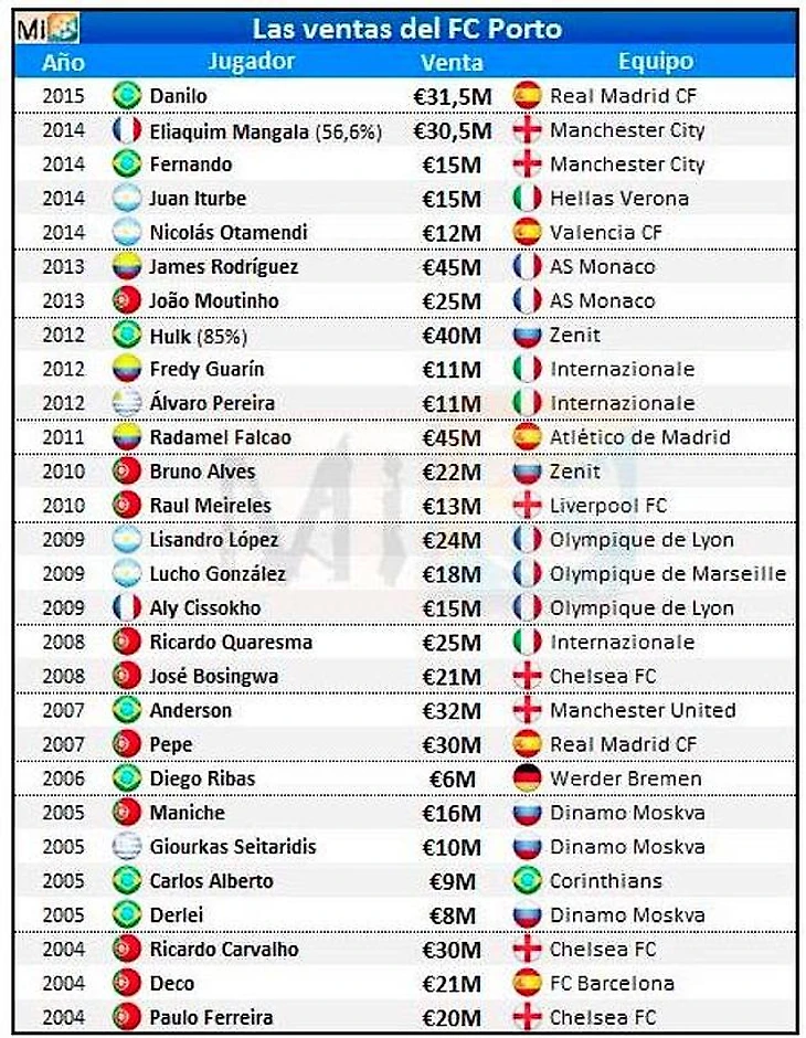 Так, по состоянию на май 2014 года, Порту за последнее десятилетие продал игроков на более чем полмиллиарда евро (543млн.). В то же время на покупку новых игроков из кассы было потрачено 277 млн. Как видите выручка — 266 млн.евро.