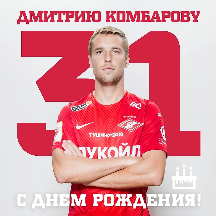Сегодня исполняется 31 год защитнику красно-белых Дмитрию Комбарову.