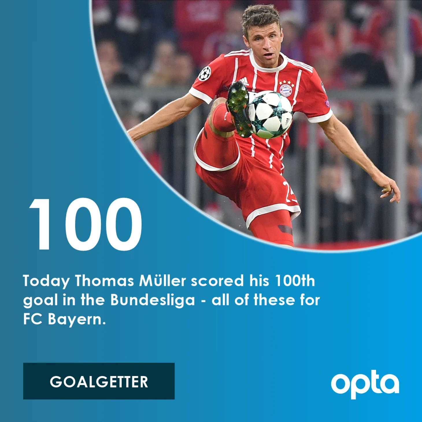 Второй гол Томаса Мюллера стал для него сотым в Бундеслиге.