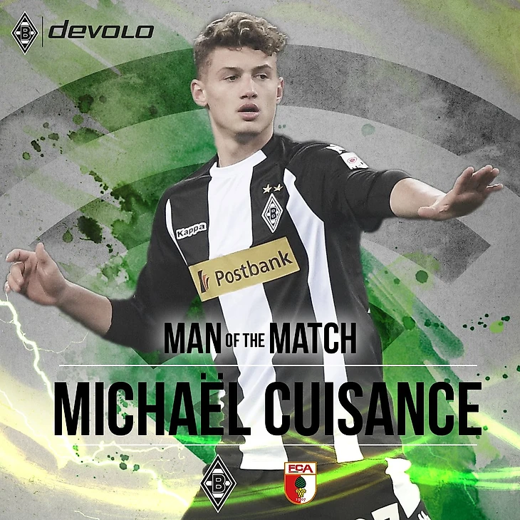 АльвредФиннбогасон впервые не забил, играя против Менхенгладбаха – в прошлые три раза ему это удавалось, включая его первый гол в БЛ 28-го февраля 2016.