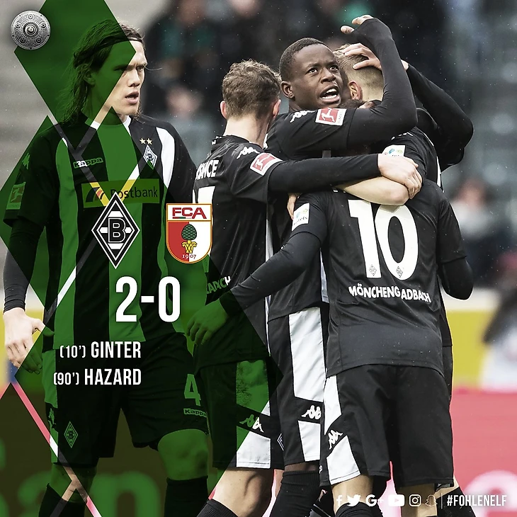 Гладбах продолжает борьбу за Лигу Чемпионов, «Аугсбург» в трех шагах от этой компании.