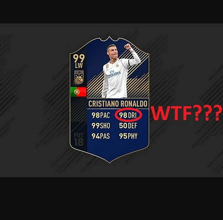 Карточка из команды года Роналду с дрибблингом 98 (на обычной карточке - 93 - очень сильно завышен)