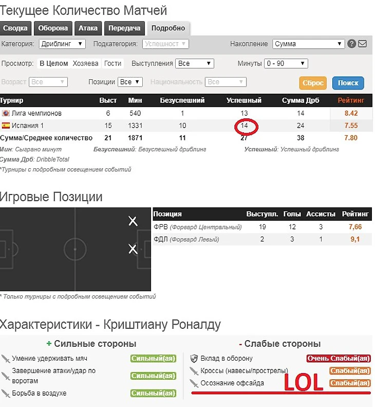 А вот сколько дрибблинга у самопровозглашенного зе беста за текущий сезон