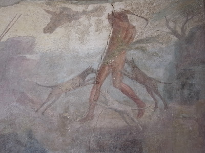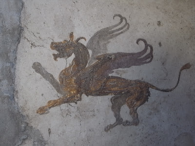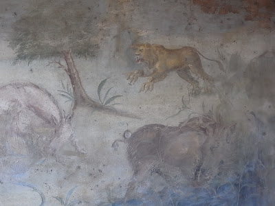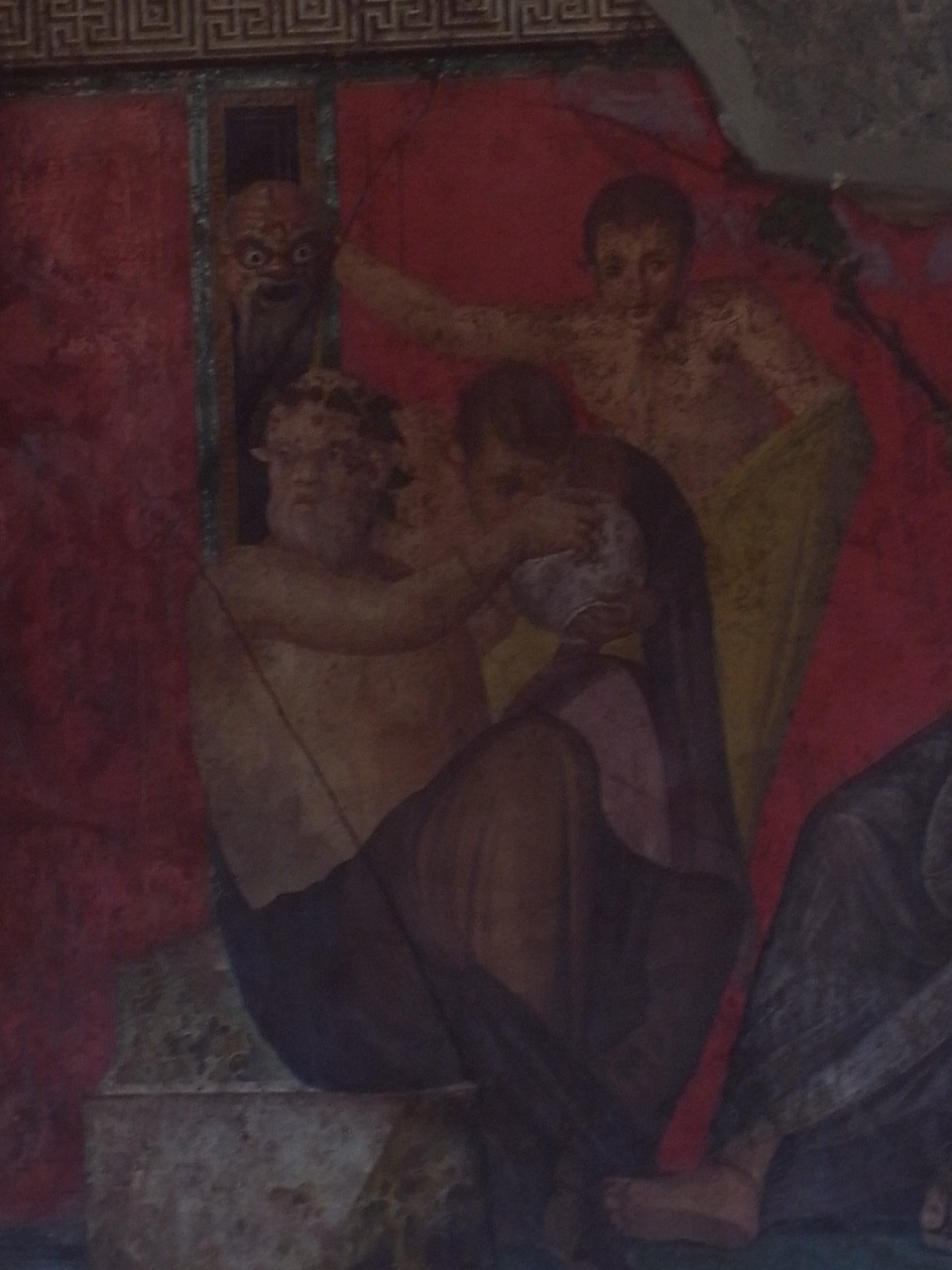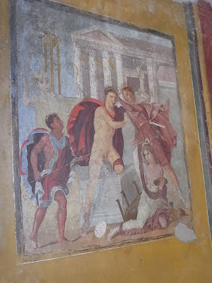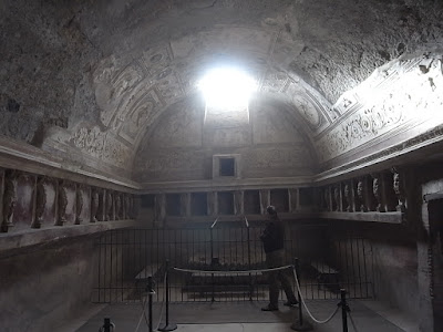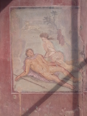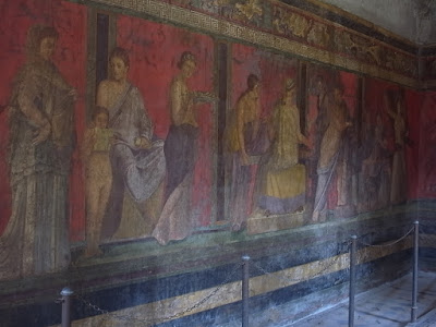 к последней точке нашей античной прогулки - Вилле Мистерий, которая представляла собой большую виллу несколько на отшибе от города и прославилась одним из своих залов, на стенах которого яркими красками был описан несколько садо-мазохистский обряд посвящения девушки в мистерии запрещенного в 1-ом веке н.э. культа Дионисия.