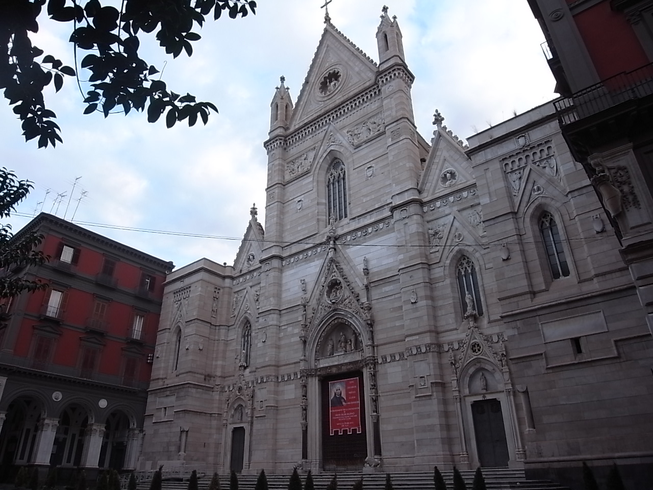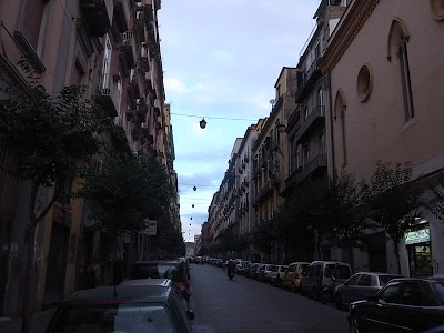 Вываливаемся из автобуса на пьяцца Гарибальди... Если Вас попросят описать итальянскую пьяццу, то что первое придет в голову? Залитая солнцем площадь с элегантными ресторанами и кафэ, где хорошо одетая почтенная публика заливает вкуснейший обед бокалом красного вина? Так вот, с площадью имени Гарибальди в Неаполе такая картина ничего общего не имеет. Вообще. Хмурый день, пространство забитое машинами и автобусами и снующими между ними скутеры, обшарпанные дома, никуда не движущаяся стройка, кучи мусора, толпа северо-африканцев на тюках, шатающиеся взад-вперед ободранные личности с какими-то мешками... Италия? Европа? Вроде так.... географически... Уходим с площади по Корсо Умберто, одной из главных улиц города, на данный момент друхполосной, так как полдороги перерыто. Полтротуара забито сомалийцами, торгующими всякими сумками, очками и прочим "дизайнеровской" хламом. Минут через 10 нам направо - виа Дуомо, сравнительно чистенькая и ухоженная,