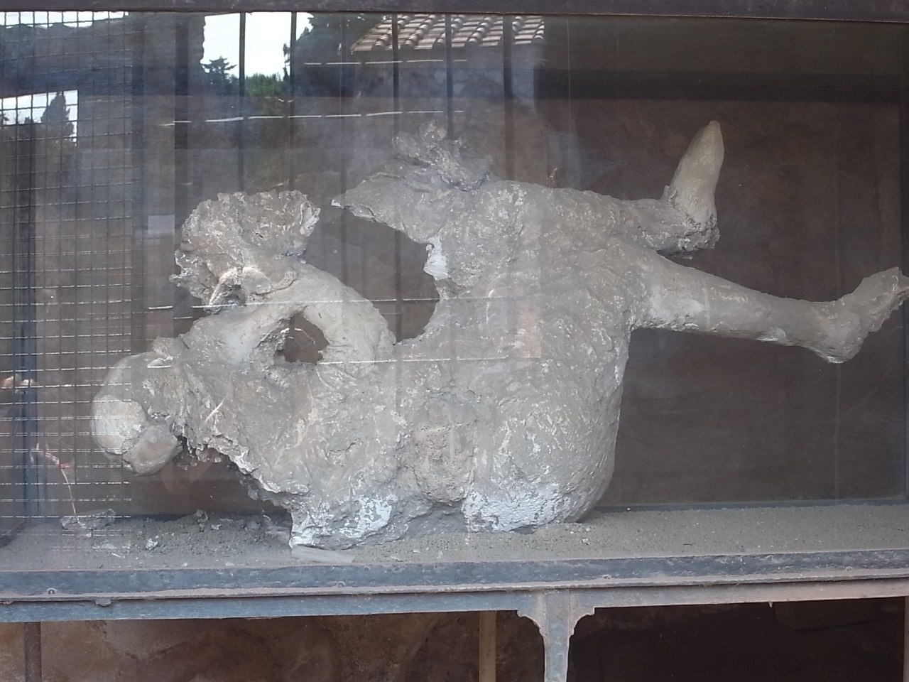 Слева находится склад с различными сосудами, а также с фигурами погибших (полости оставшиеся в пепле от тел залиты гипсом) в разных позах.