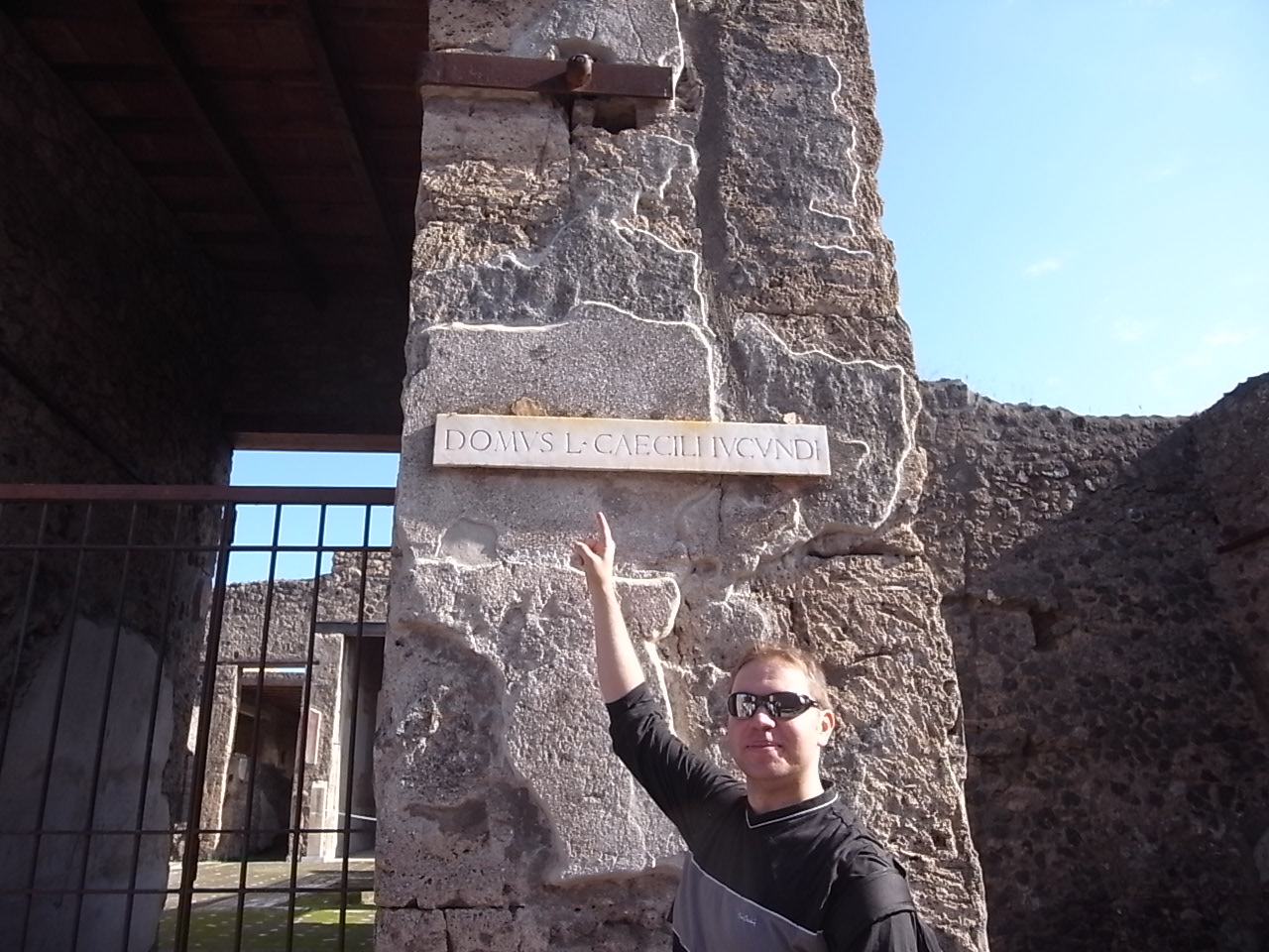 Станция "Pompei - Scavi, Villa Misteri" находится практически у самого входа, который открывается в 8.30 утра. Мы хотели зайти пораньше, чтобы попробовать хоть немного обогнать толпы. Заплатили по 11 евро и вперед. Мне повезло, что в этот раз со мной был Энди, так как он изучал латынь в школе (у нас ее не преподавали).