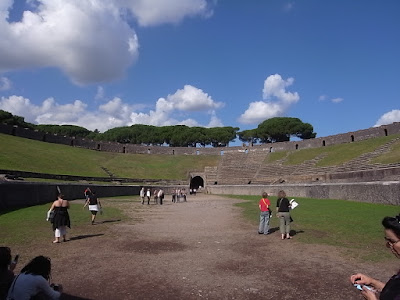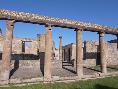 На погребенный город случайно наткнулись в конце 16-го века, но серьезные раскопки там ведутся с середины 18-го века и тот факт, что он был "под землей", спас его от участи многих других римских поселений, которые за века были значительно разворованы и растащены на стройматериалы более поздними поколениями. Помпеи дал уникальную возможность взглянуть на повседневную жизнь города Римской империи. Большинство сокровищ Помпей - статуи, мозаики, украшения - находятся в Национальном Археологическом Музее Неаполя, однако это не означает, что нет возможности немного окунуться в древний мир в самом городе - зайти в многочисленные дома и виллы, харчевны и магазины, посетить театр и форум. Так что когда мы наш поезд "Circumvesuvianы" в 8 утра тронулся со станции "Порта Нолана", о предстоящем матче я на некоторое время забыл.