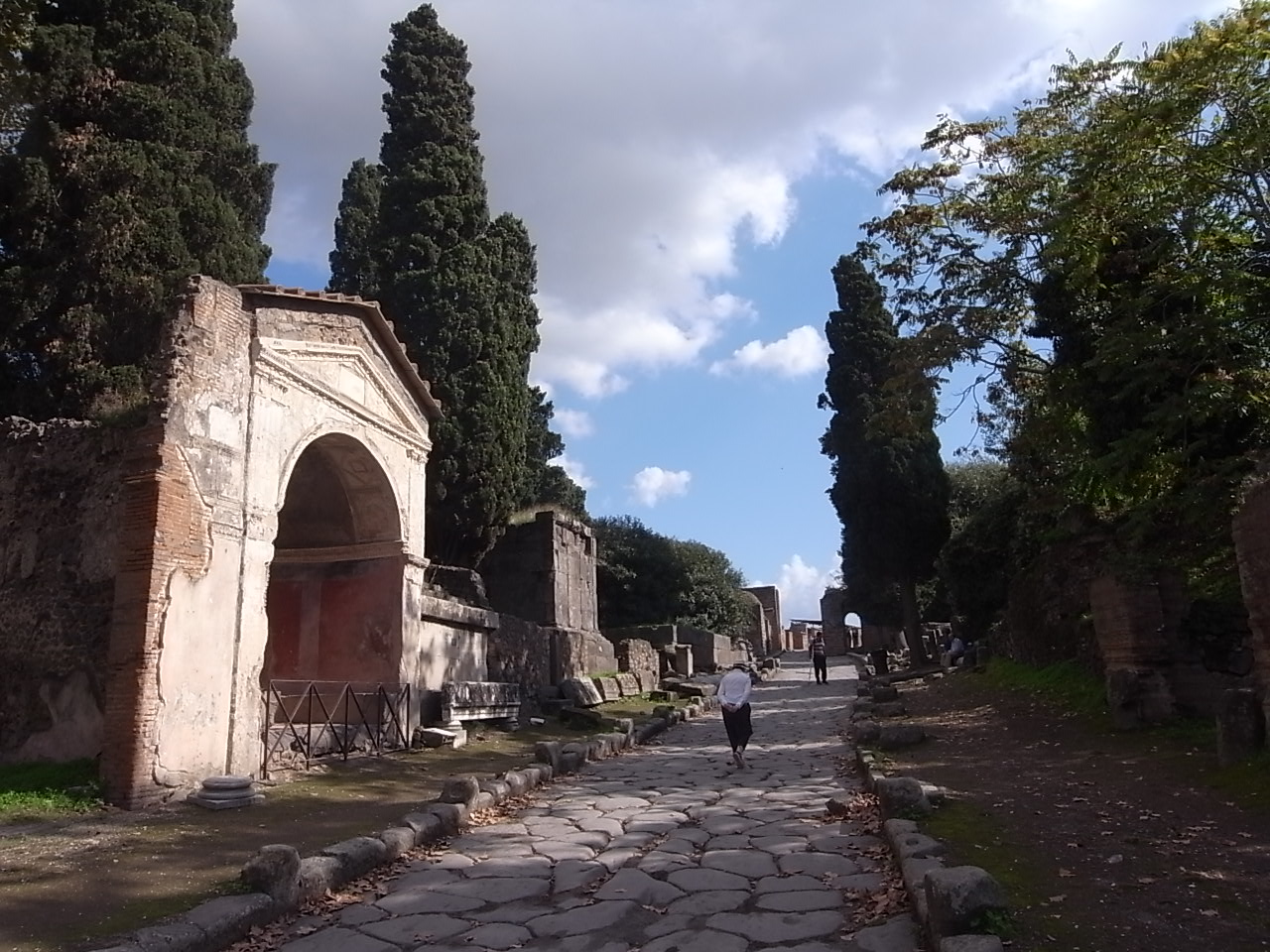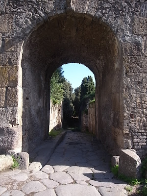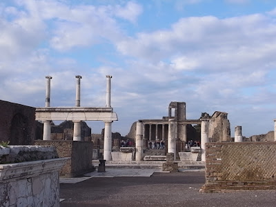 Бывал я на руинах многих городов Римской империи - от Британии до Северной Африки и от Испании до Среднего Востока - но в самом сердце империи, в Италии, до сих пор не приходилось. В этот же день появилась возможность посетить один из самых знаменитых городов античного мира - Помпеи. Как известно, это был хорошо расположенный торговый город недалеко от Аппиевой дороги с населением в 20000 человек к 79-му году нашей эры. В августе того года, он был "накрыт" (вместе с городами Геркуланум и Стабия) извержением Везувия, который покрыл город толстым слоем (несколько метров) пепла и пемзы.