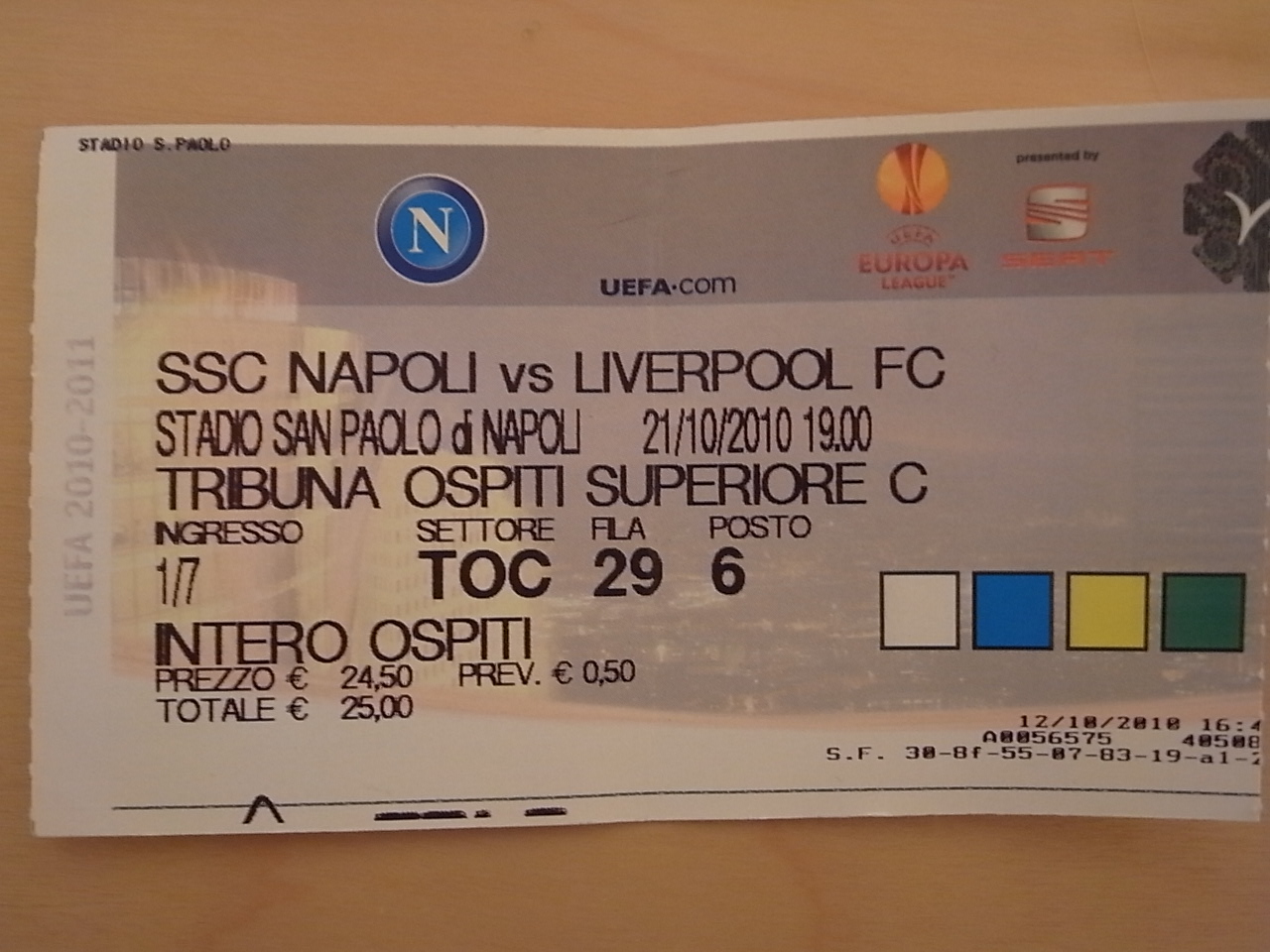 К сожалению, время пребывания в Италии у нас сводилось всего к 43-ем часам. Было бы время, я бы конечно остался на викенд, дабы облазить все достопримечательности, но уже в пятницу я вылетал в Южную Африку, так что в утром 22-го предстоял мы летели обратно. При этом самолет приземлялся в Станстеде в час дня, а в восемь вечера мне надо было вылетать "Южноафриканскими Авиалниниями" в Йоханнесбург (а дальше до Кейп Тауна) из аэропорта Хитроу, который находится на противоположной окраине Лондона. При этом по дороге еще предстояло забежать домой и закончить сборы. Повезло, что рейс "Изиджета" из Неаполя все-таки давал возможность успеть. Перелет я свой выкупил за 90 фунтов через час после жеребьевки в конце августа, ссылаясь на расписание матчей с какого-то австрийского вебсайта, линк на который появился на форуме "RAWK". Некоторые юзеры (включая меня) кинулись покупать билеты, а через некоторое время появилось сообщение, что расписание... неверное. Юзеры в ужасе - официальное расписание действительно отличалось, но... даты матчей именно с "Наполи" оказались верными!