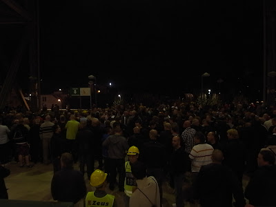 Появились мы там в четверть шестого, как раз в тот момент когда последние автобусы оправились в путь. С нами подошли еще четверо и мы подошли к припаркованой полицейской машине и группе людей в штатском у нее, дабы обсудить с ними дальнейшие планы перемещения нас на стадион. После 10-ти минут звонков, переговоров и размахиваний руками, подъехали два "Рено" и мы решили, что нас сейчас прямо с ветерком отвезут на стадион (рядом - 6 километров). Однако, нас перебросили в другую часть портовой зоны и высадили у группы из примерно 60-70-ти болельщиков "Ливерпуля". Этих где-то "насобирали" по окрестностям и сказали ждать здесь.
