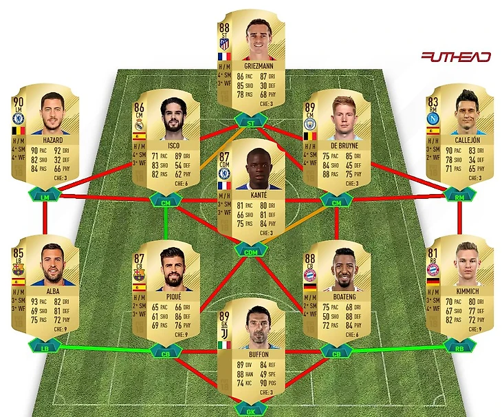 Раджа Наингголан (ЦП), Эден Азар (ЛП), Кевин Де Брёйне (АПЗ)
