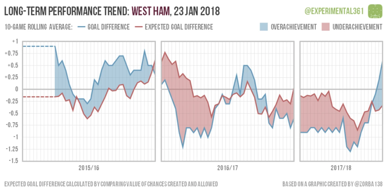 Можно сказать, что «Вест Хэм» угадал с увольнением Билича и назначением Мойеса (показатели goal difference просто взлетели), но xG difference пока на том же уровне, что и при хорвате.