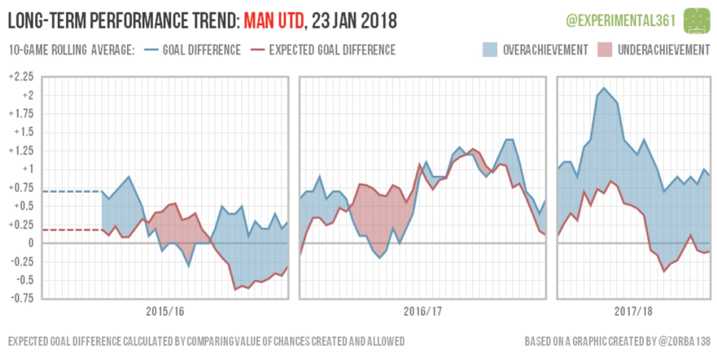 Показатели «Манчестер Юнайтед» по xG difference в последнее время чуть ли не худшие за всё время пребывания Моуринью у руля «красных дьяволов».