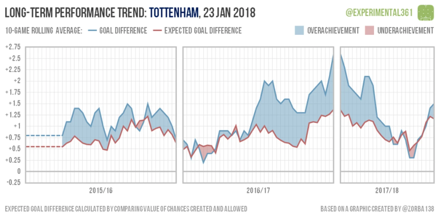 Стоит обратить внимание на практически идентичные в последнее время показатели goal difference и xG difference у «Тоттенхэма».