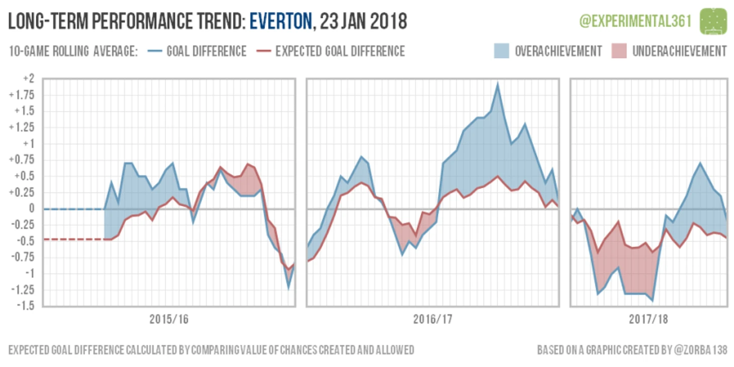 «Эвертон» Сэма Эллардайса серьёзно улучшили показатели goal difference, чего не скажешь о xG difference (там всё осталось примерно на уровне предшественника)