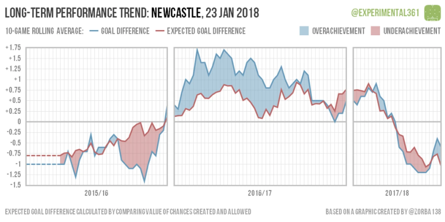 «Ньюкасл» в последних матчах прервал стремительное падение обоих показателей, но о дальнейшем улучшении пока говорить не приходится.