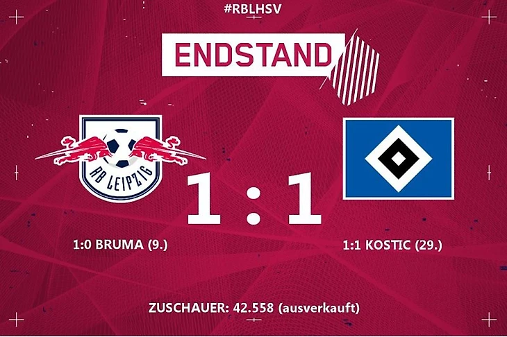 Однако «Гамбургу» довольно быстро удалось отыграться. Гидеон Юнг сумел протолкнуть мяч между двумя игроками «Быков» и Филипп Костич уверенно реализовал выход один на один, забив также свой третий гол в текущем сезоне.
