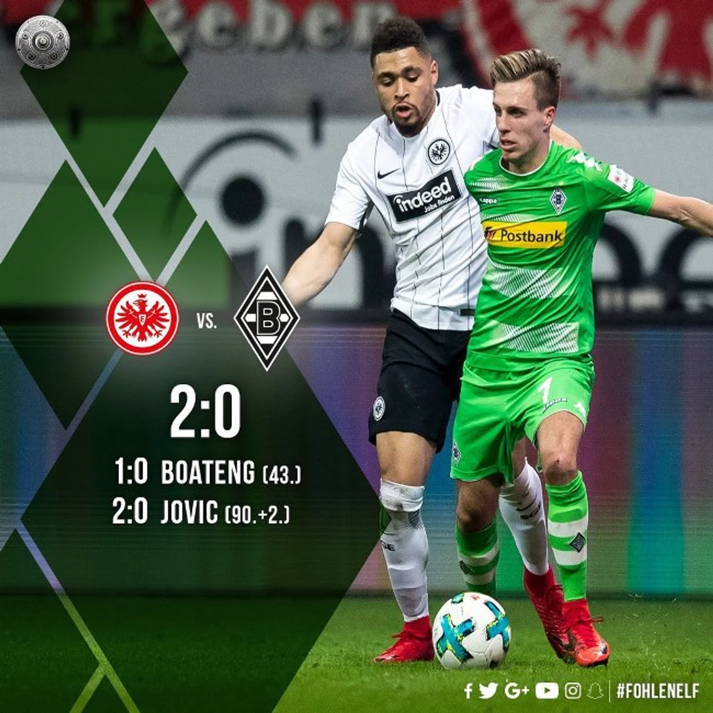 Ну а в концовке матча снова, как и в матче с «Вольфсбургом», сумел отличиться сербский нападающий хозяев Лука Йович. Примечательно, что гол соорудили два юных игрока «Айнтрахта». Передачу на Йовича выполнил 19-летний Аймен Баркок, для которого эта передача стала первым результативным действием в Бундеслиге в этом сезоне.