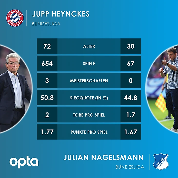 Самый молодой тренер Бундеслиги, 30-летний Юлиан Нагельсманн, встретился с самым возрастным, 72-летним Юппом Хайнкесом. Их разница в возрасте – 15 415 дней.