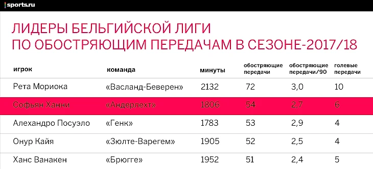 Это не мешало Софьяну входить в топ-8 бельгийской лиги по качеству передач под удар.