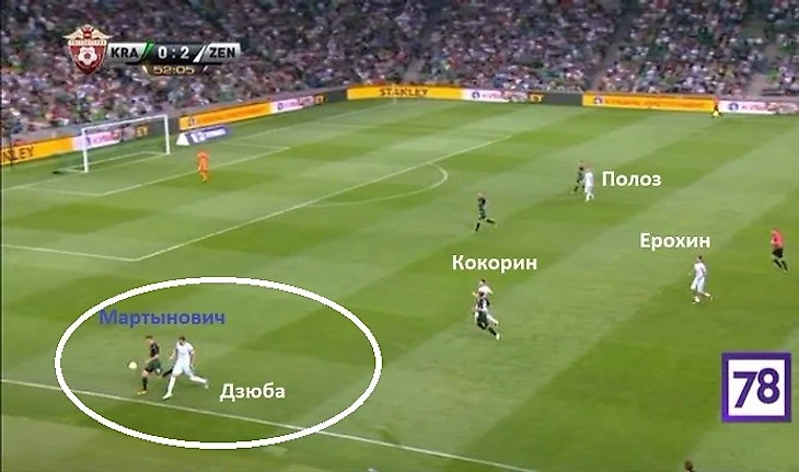 В контратаках быстрого игрока можно использовать и по-другому — не в начальной фазе, а в конечной. Например, так, как «Локо» использовал Джефферсона Фарфана в матче с «Зенитом» (3:0). В финальной стадии контратак перуанец открывался в линии защитников под проникающую передачу от партнера. Причем не просто в линии защитников: все время форвард убегал от самого медленного центрального защитника! Большую часть матча им был Миха Мевля, пока его не заменили. После замены таким игроком стал Бранислав Иванович. Тот матч стал лучшим для Фарфана в текущем розыгрыше чемпионата России: дважды он забил сам, один раз ассистировал партнеру.