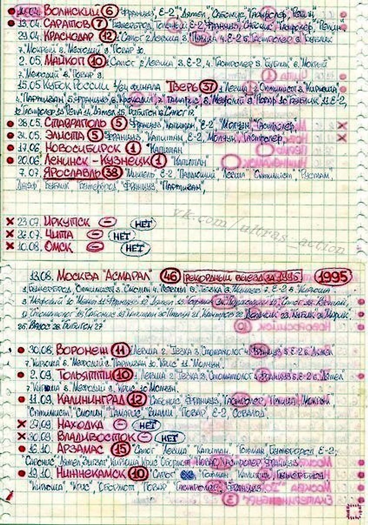 Выездная статистика фанатов «Зенита» в сезоне 1995 года