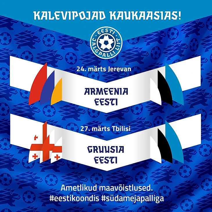 В марта сборная Эстонии по футболу проведёт на выезде две товарищеские игры против национальных команд Армении и Грузии.