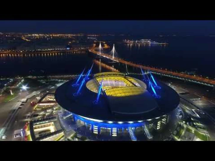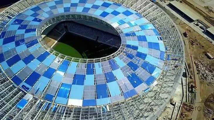 Смотря на стадион с высоты птичьего полета, невольно задумываешься о том, что арена неплохо бы подошла питерскому "Зениту" благодаря сине-бело-голубым цветам, в которые разукрашено сверху сооружение.