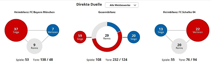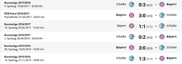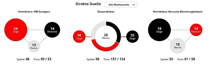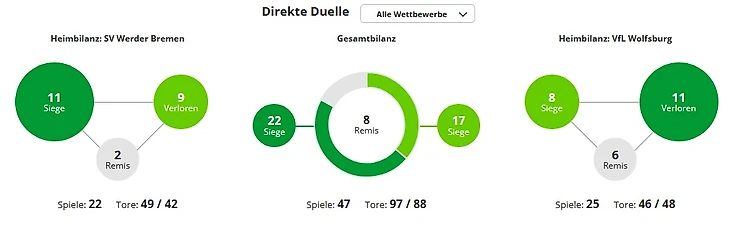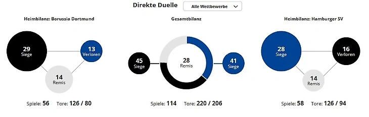 *Gesamtbilanz – общий баланс, Нeimbilanz - баланс игр дома, Remis - ничьи, Siege - победы, Тоге - голы