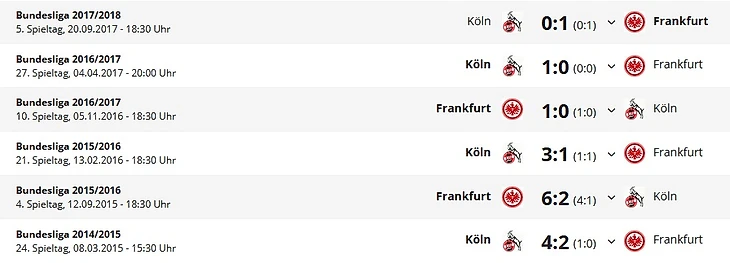 - В предыдущих восьми матчах между командами регулярно меняется победитель. Последний раз выиграл "Айнтрахт". Подошла очередь "Кельна"?