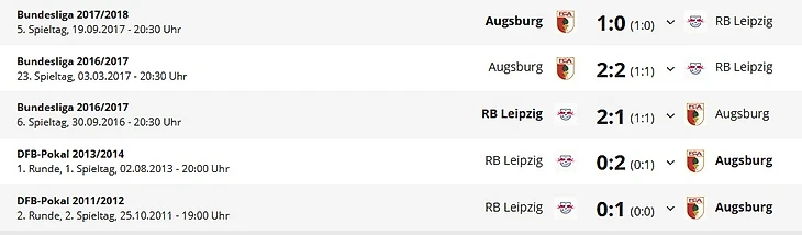 - "Аугсбург" и "РБ" сыграют между собой уже в шестой раз. Из предыдущих пяти матчей "быкам" удалось выиграть всего один. В поединке первого круга "Аугсбург" оказался сильнее благодаря голу Грегорича. Для экс-игрока "Гамбурга" тот мяч стал первым за новый клуб