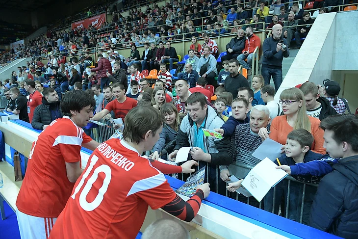 Пока все ждали награждения игроки сборной России раздавали автографы на трибуне, где сидели их дети и жены.