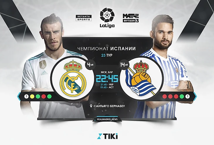 Сегодня в рамках 23-го тура испанской Ла Лиги Реал Мадрид на родном Сантьяго Бернабеу примет Реал Сосьедад. Королевский Клуб практический преодолел затянувшийся внутренний кризис и готов вернуться в гонку за второе место в Чемпионате Испании. По последним заявлениям главного тренера Реала Зинедина Зидана, его команда уже признала, что корона Чемпиона Страны плавно перешла к Барселоне. Сливочные ведут плотную подготовку к домашнему поединку с ПСЖ в рамках 1/8 финала Лиги Чемпионов, поэтому игра с Басками из Сан-Себастьяна, станет для команды Зидана неким тренировочным матчем. Гости Реал Мадрида проводят не лучший свой сезон и вряд ли войдут в первую пятерку, ибо техническое состояние команды вызывает не мало опасении у главного тренера гостей Эусебио Сагристана.