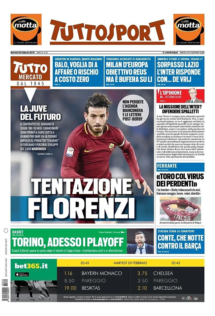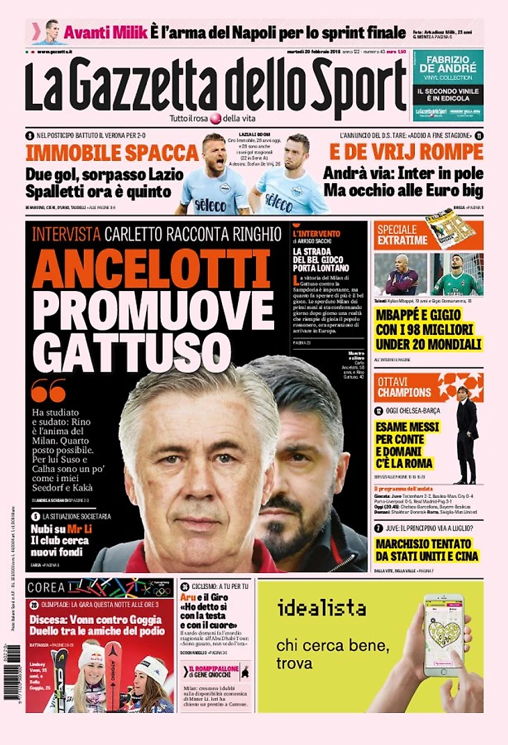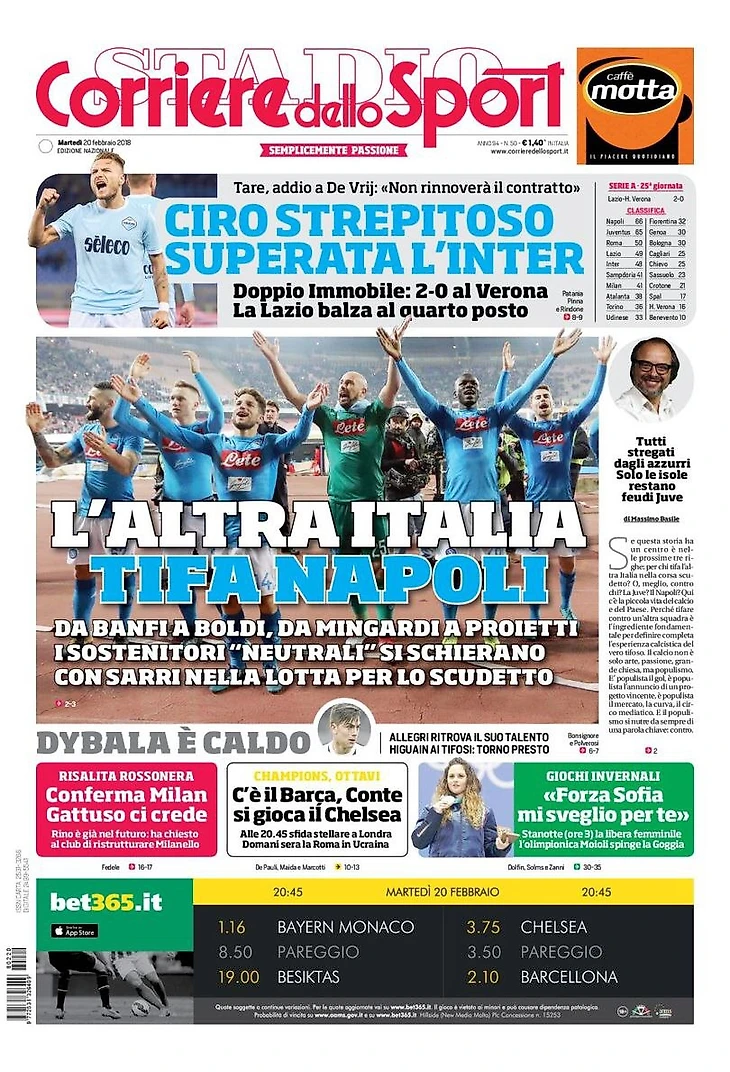 Другая Италия болеет за «Наполи». Заголовки Gazzetta, TuttoSport и Corriere за 20 февраля