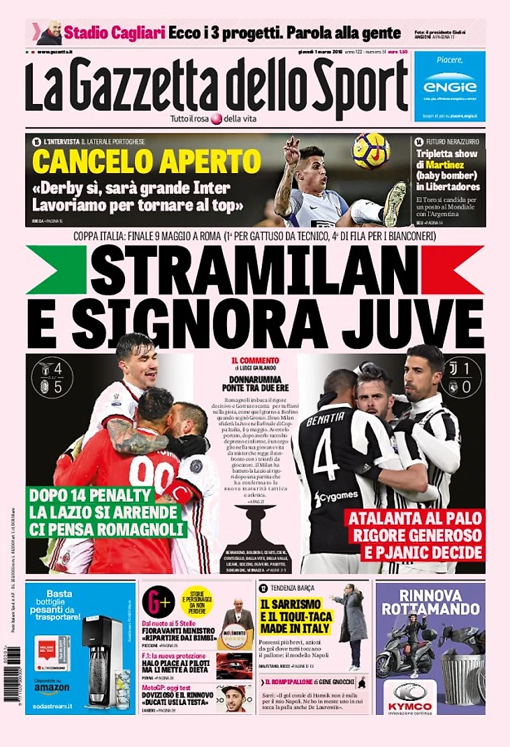 Экстра «Милан» и синьора «Юве». Заголовки Gazzetta, TuttoSport и Corriere за 1 марта