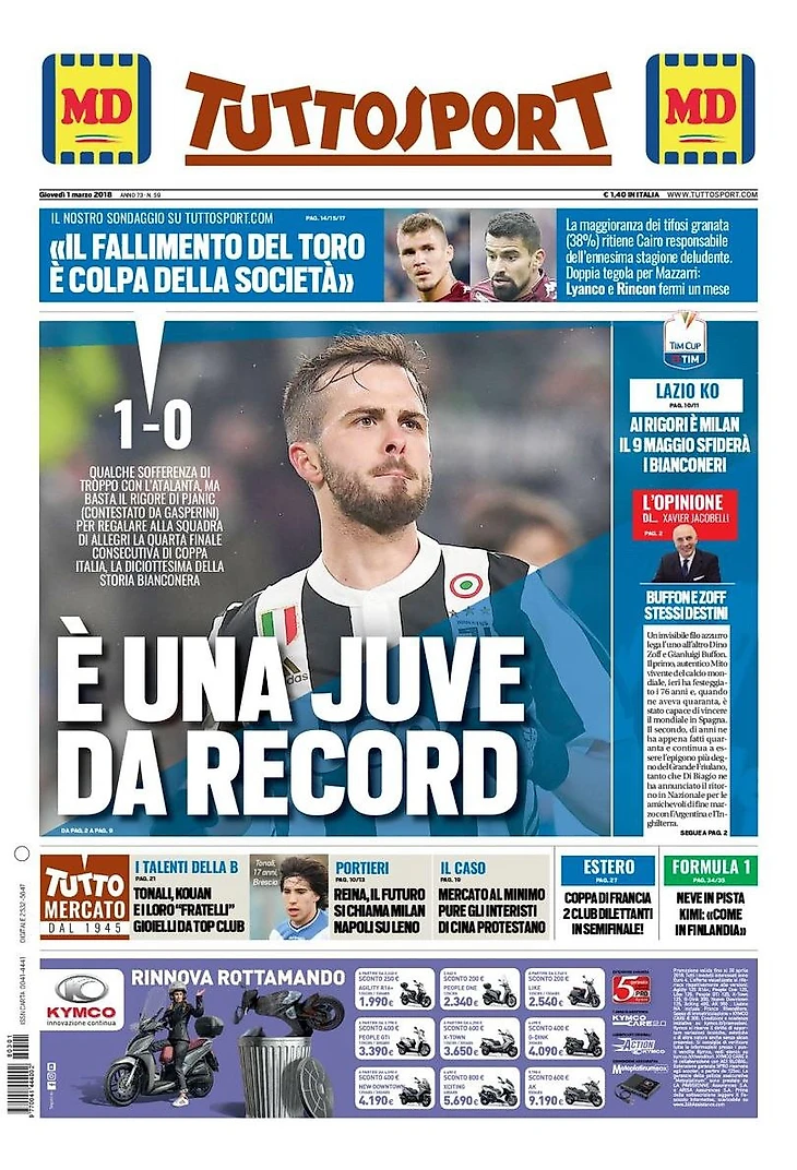 C «Аталантой» пришлось немного потрудиться, но хватило пенальти Пьянича (опротестованного Гасперини), чтобы подарить команде Аллегри четвёртый подряд финал Кубка, и восемнадцатый в истории Бьянконери.