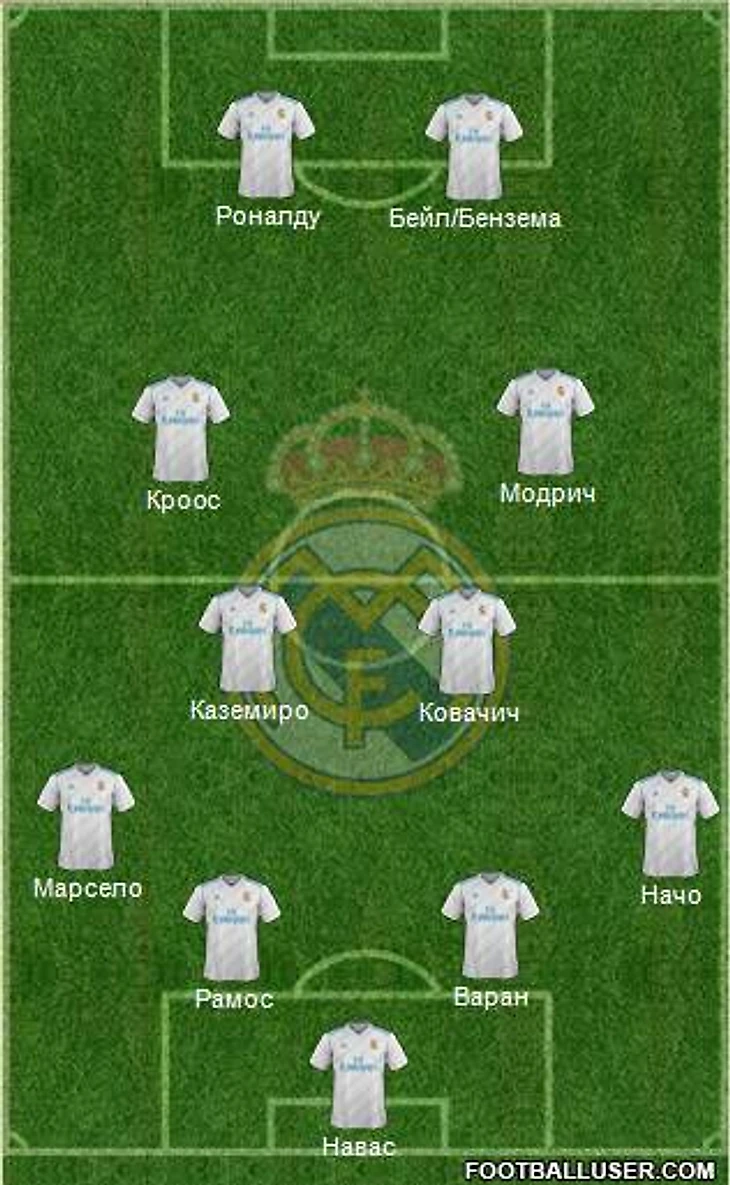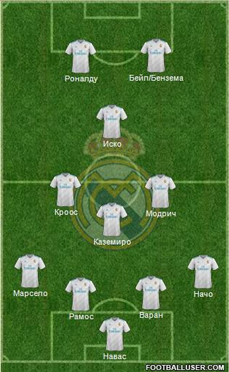 Тут только вопрос, кто останется на скамейке: Бейл или Бензема? Я почему-то думаю, что Карим может остаться в запасе на этот матч. Или, возможно, мне просто хочется так думать. Но если так произойдет, то Роналду будет играть центрфорварда, а Бейл на левом фланге.