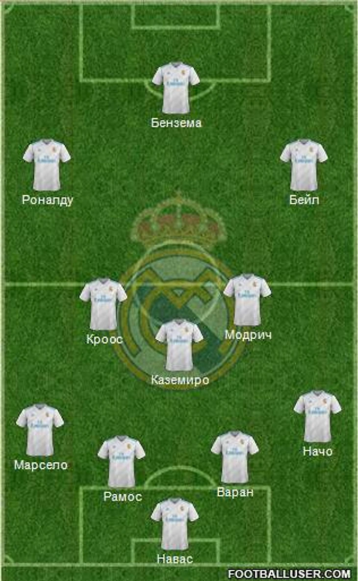 Навас, Начо, Варан, Рамос, Марсело, Каземиро, Модрич, Кроос, Роналду.