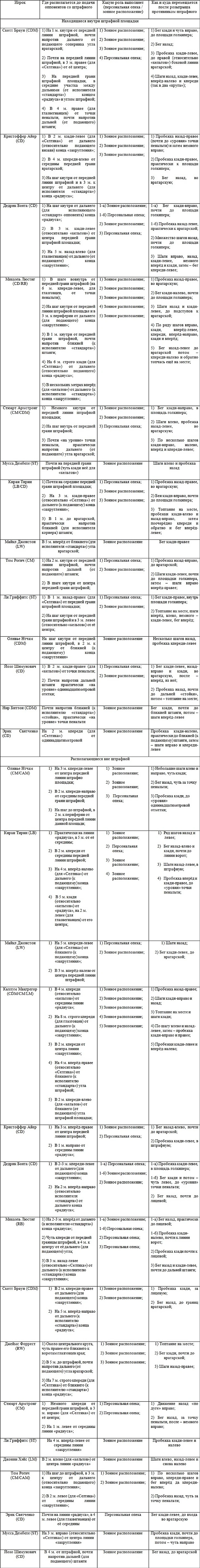 Точку в рассматриваемом виде наступлений лучше ставить вырываясь из-под опеки Микаэля Люстига. Чуть сложнее, когда приходится пребывать под присмотром Тирни, Бояты или Нира Биттона. Прочие элементы защитных редутов «The Bhoys» позволяют соперникам пробивать в конечных стадиях «позиционок» через середину совсем уж разово. О необходимых во всех таких эпизодах мероприятиях с целью вернейшего огорчения «Селтика» и его поклонников можно узнать из представленной далее таблицы: