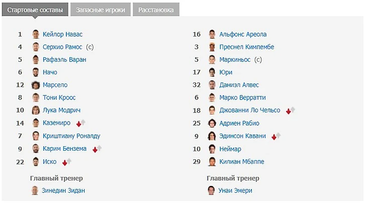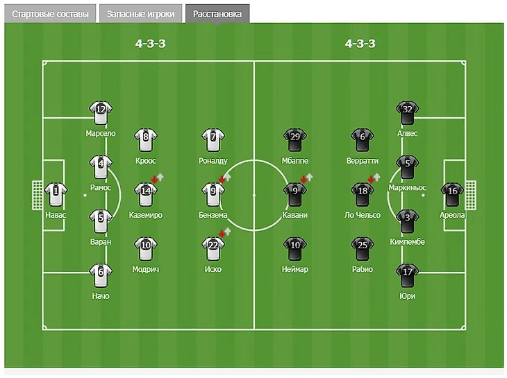 Зидан не стал изобретать велосипед, выпустив всех сильнейших на поле. Если честно, я бы оставил Бензема на скамейке запасных, но все мы знаем о хороших отношениях француза с тренером. В копилку мудрых решений Зизу можно добавить наличие Иско в стартовом составе, а не Бэйла, что положительно скажется на игру. Также стоит отметить дисквалификацию Дани Карвахаля, которого вынужденно заменял Начо (потеря значимая, так как испанцу нужно было противостоять Неймару, и не во всех моментах он справился с этой задачей).